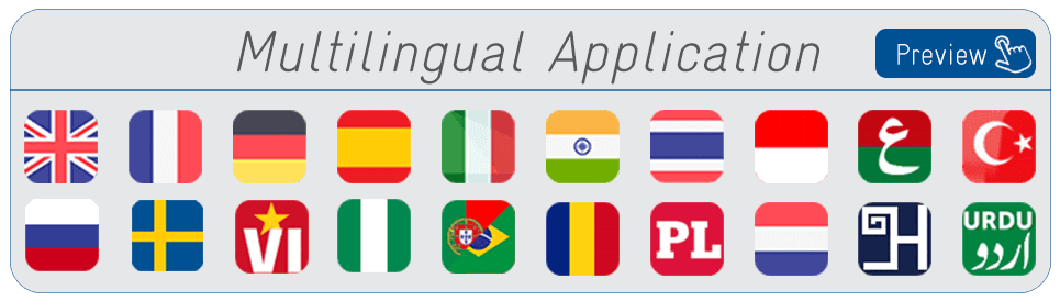 English, French, Spanish, German, Italian, Hindi, Thai, Indonesian, Arabic, Turkish, Russian, Portuguese, Swedish, Bengali, Urdu, Hausa, Dutch, Polish, Vietnamese and Romanian.