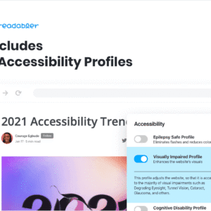 The accessibility plugin for WordPress will make publications on your website accessible to people with perception problems, cognitive impairments, hearing or vision impairments.The Readabler is a lightweight and powerful solution for increasing content accessibility on any WordPress site. The plugin is built on JavaScript, making it fully compatible with most existing WordPress Themes and extensions. It also allows the plugin to work quickly in any modern browser, both on a mobile device, laptop, and desktop computer.Using the plugin settings, it is possible to choose a flexible set of settings and options that will be used on your site. Simultaneously, the plugin has 5 pre-installed profiles that will increase the accessibility of your site for people with Epilepsy, Visual Impaired, Cognitive Disability, ADHC, and also partially or completely blind.